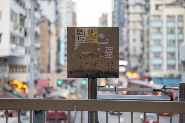 相片記載了時代,待廿年、三十年後,一張再普通的相片,都會是時代的見證。就像這相片記載了的,原來2020年的電話號碼是由八位數字組成;原來美其名叫作床位、太空艙,實質如籠屋般的床位,就要叫價港幣$1200-2800,這大概反映了香港土地貧乏、施政差劣,為貧窮基層帶來的住屋問題。更諷刺的是,在租房的街招旁,有另一張一樣的大少、設計類近的街招。街招是炒股票贏錢學習班的廣告。廣告的最後這樣寫道:「知識改變命運」。沒錯,這句話確實是不爭的真理,但看罷整張相片上的所有文字,我不禁會問:「知識改變命運……是真的嗎?」
