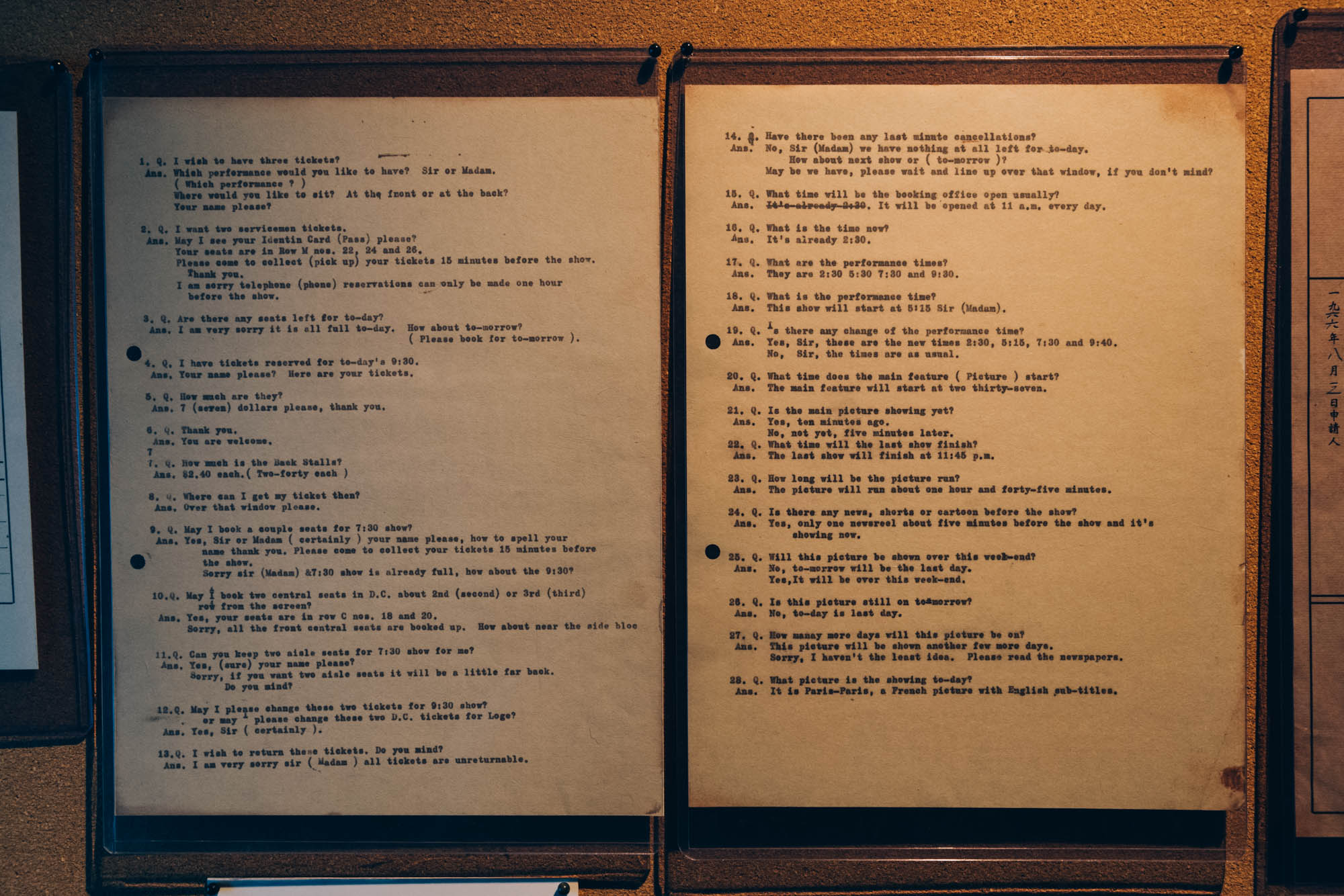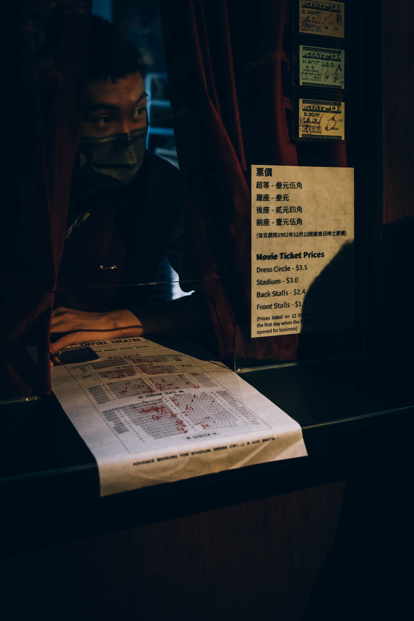 模仿當年戲院的售票處的大堂,透過重溫當年買票選座的劃位流程