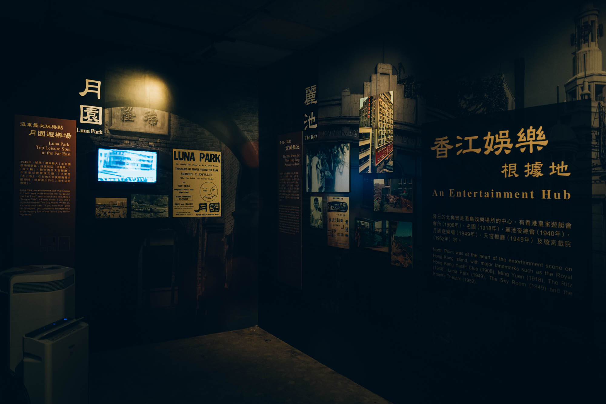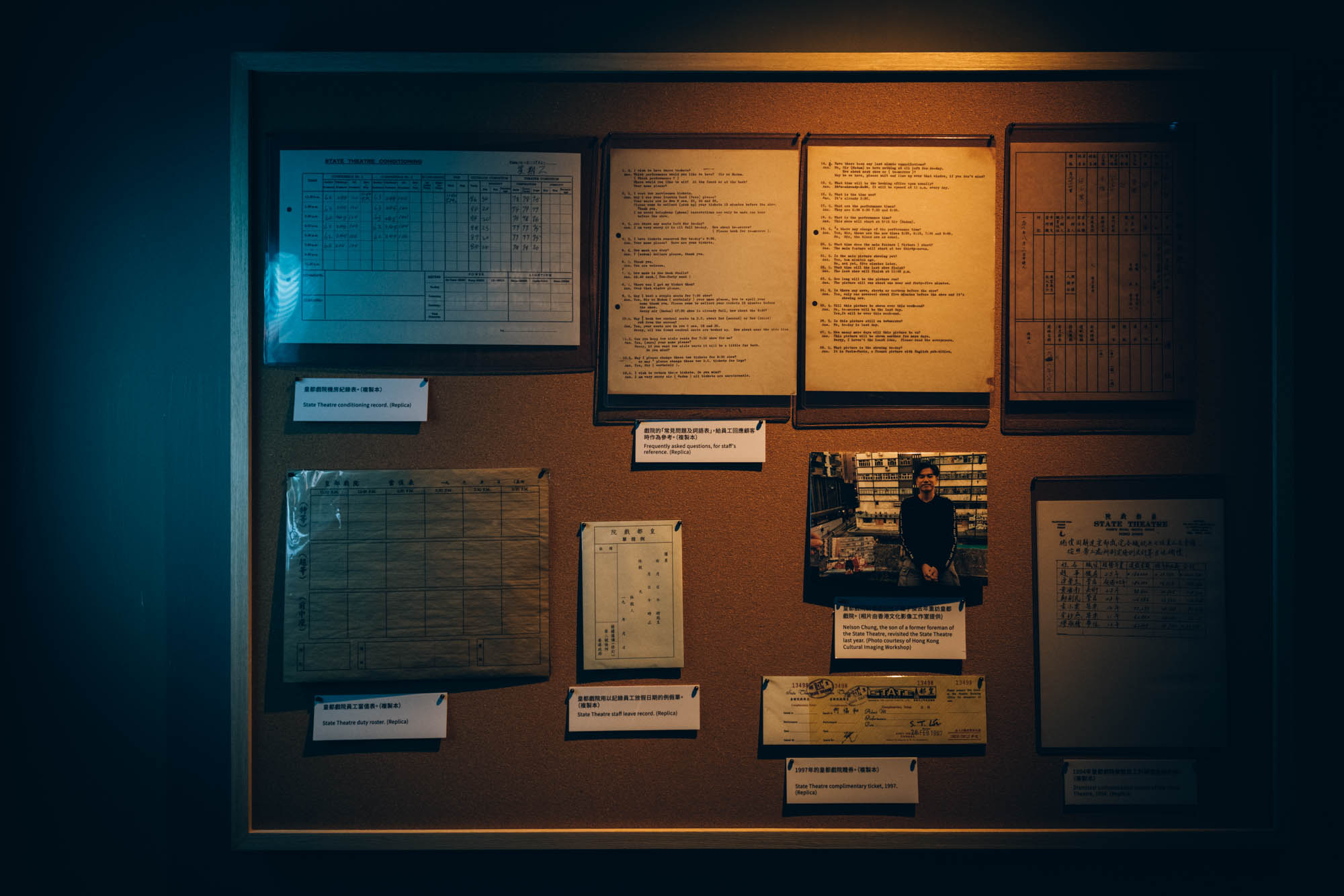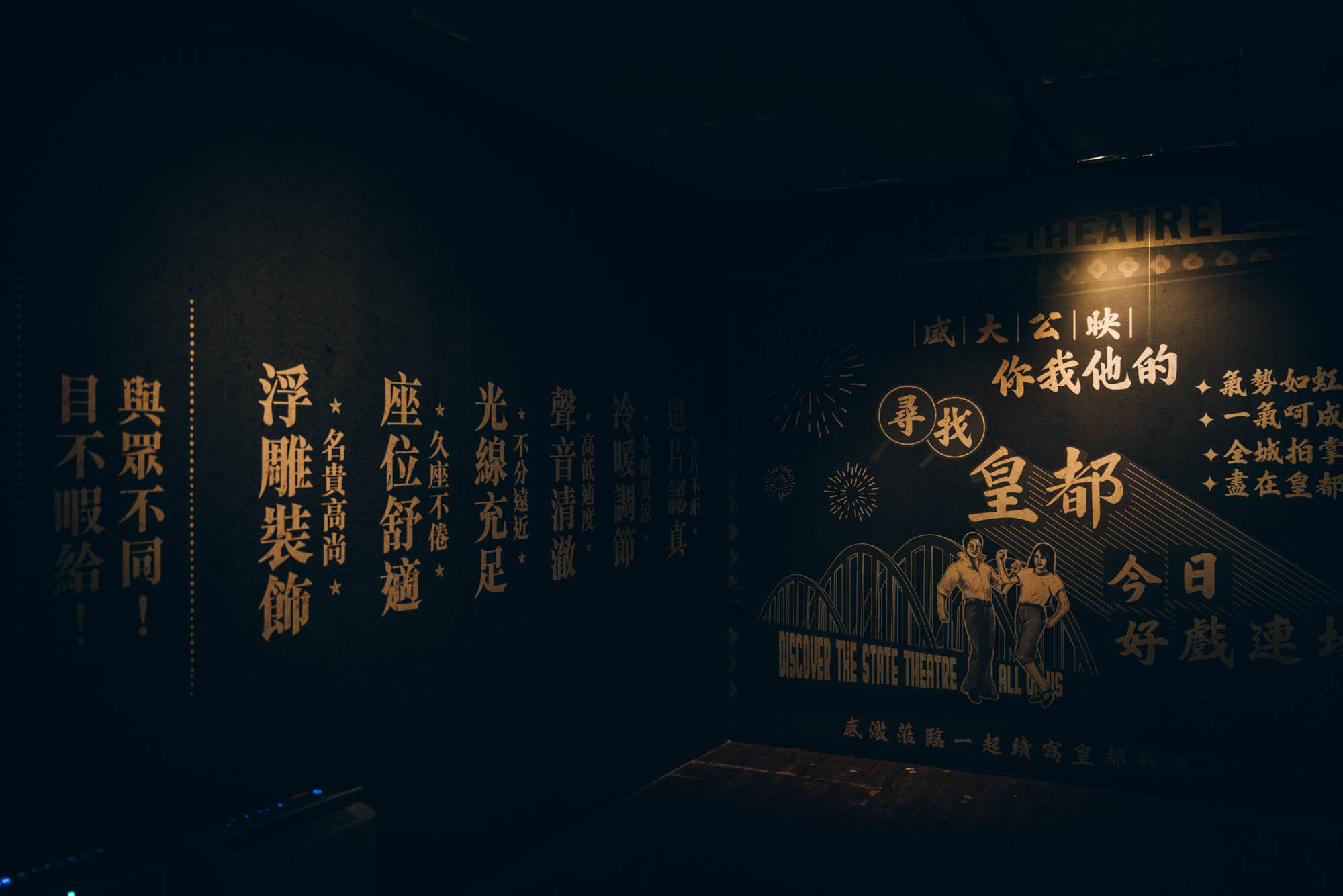 整個《尋找你我他的皇都》的體驗活動歷時大概三十分鐘,在那個模仿當年戲院的售票處的大堂,透過重溫當年買票選座的劃位流程,再由帶位員們一直引領大家遊走一間又一間,由當年店鋪改裝而成的小展館,用年代久遠卻不知為什麼會被選中的懷舊生活用品、當年來訪過的各國名人、當年的皇都大廈的賣樓書、音樂達人黃志淙的皇都音樂選擇、保留下來的髮型屋、用工字鐵與霓虹光管模仿出來的飛拱、Cyberpunk般的電視機牆、當年戲院領班的遺物⋯⋯等,來向大家介紹這個你正身處的地方,是如何由當年的璇宮戲院、「小上海」社區轉變成今天皇都戲院的模樣。