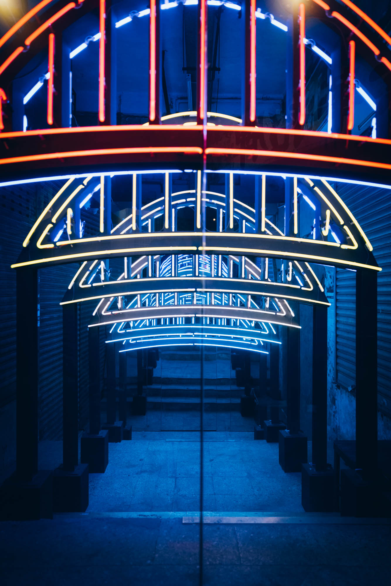 用工字鐵與霓虹光管模仿出來的飛拱