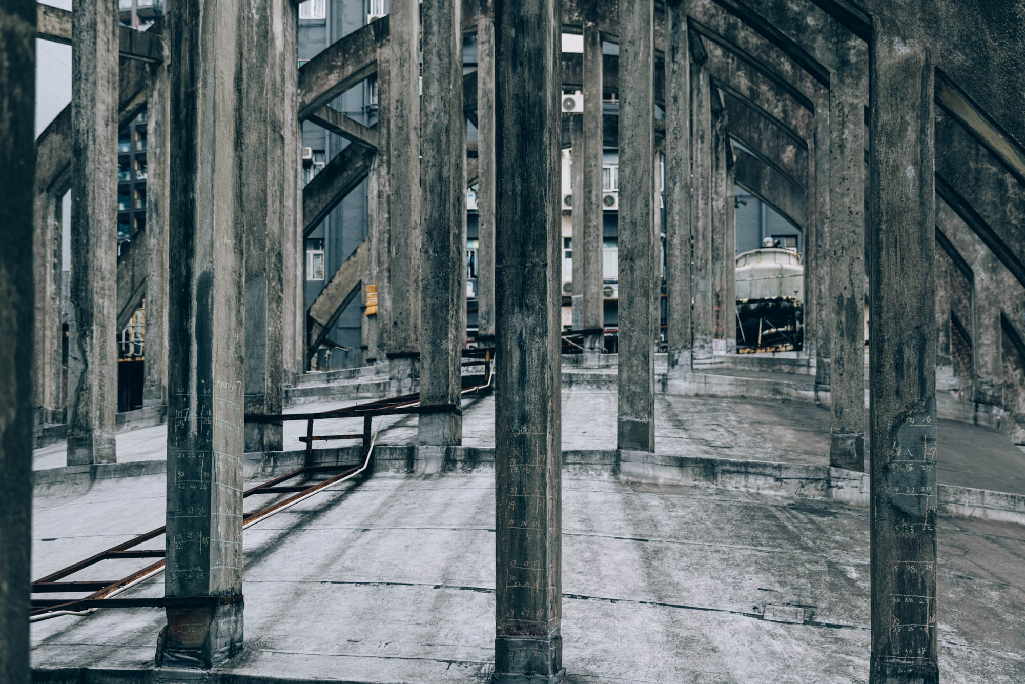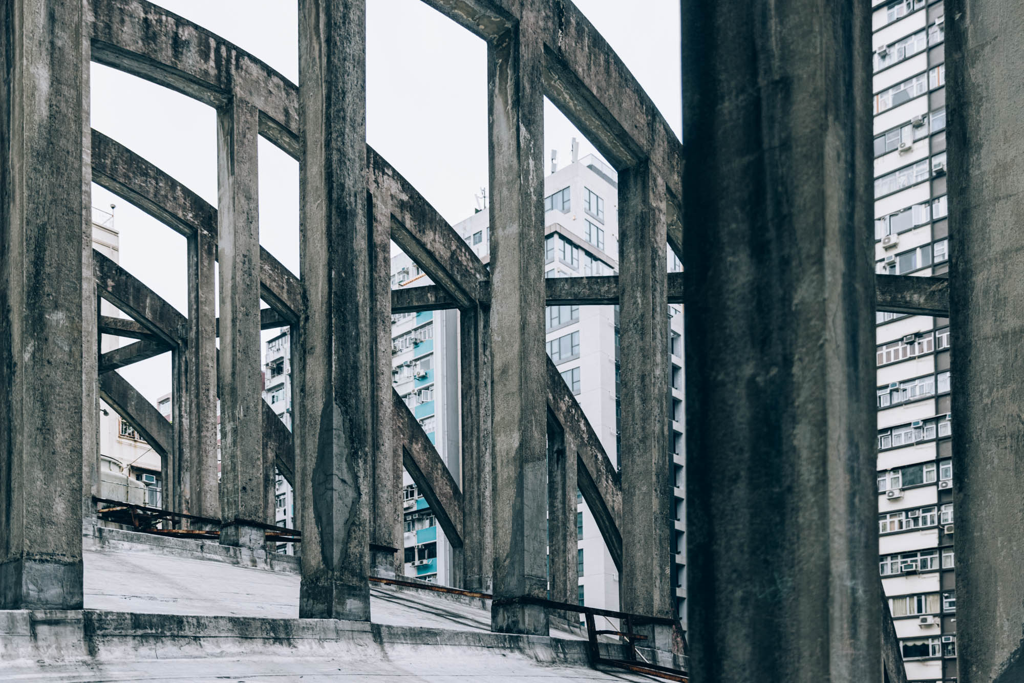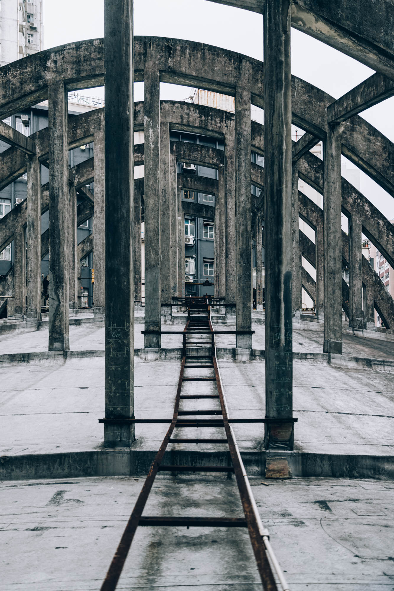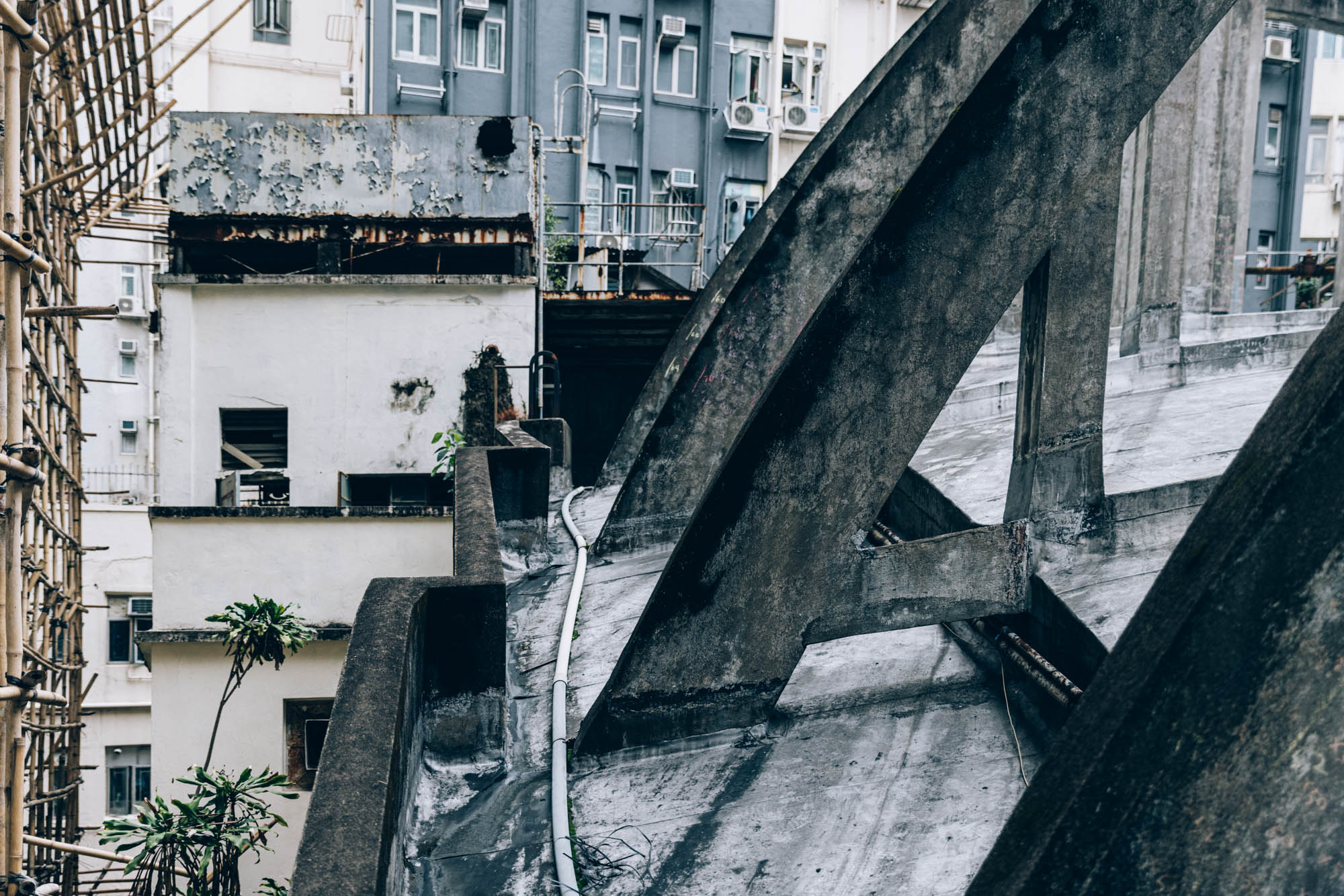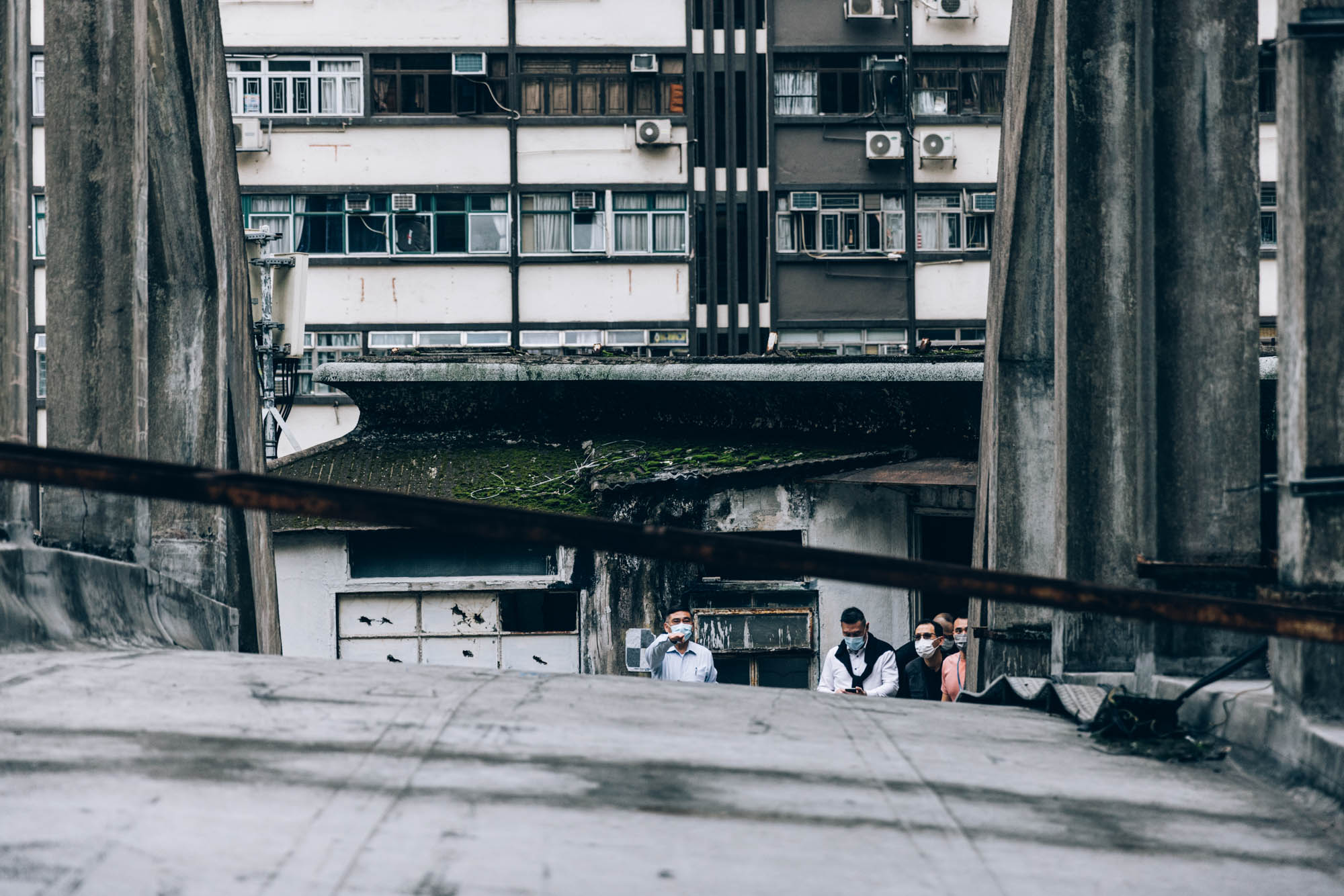 看著了濃妝烈艷的室內展覽,終於來到導賞活動的第二部份。穿過了窄窄的防火梯,終於來到皇都戲院的天台,終於能近距離的看到飛拱的真面目,看著那宏偉的飛拱,當下我震撼無言。然後趁大家還在打卡自拍之時,我早就急不及待,拿起相機,走到了天台的深處,不往的按下快門。因為我深知道,這是個可一不可再的機會,就算5年後復修好了也好,身為一般市民,是幾近沒可能再次踏足這兒的。