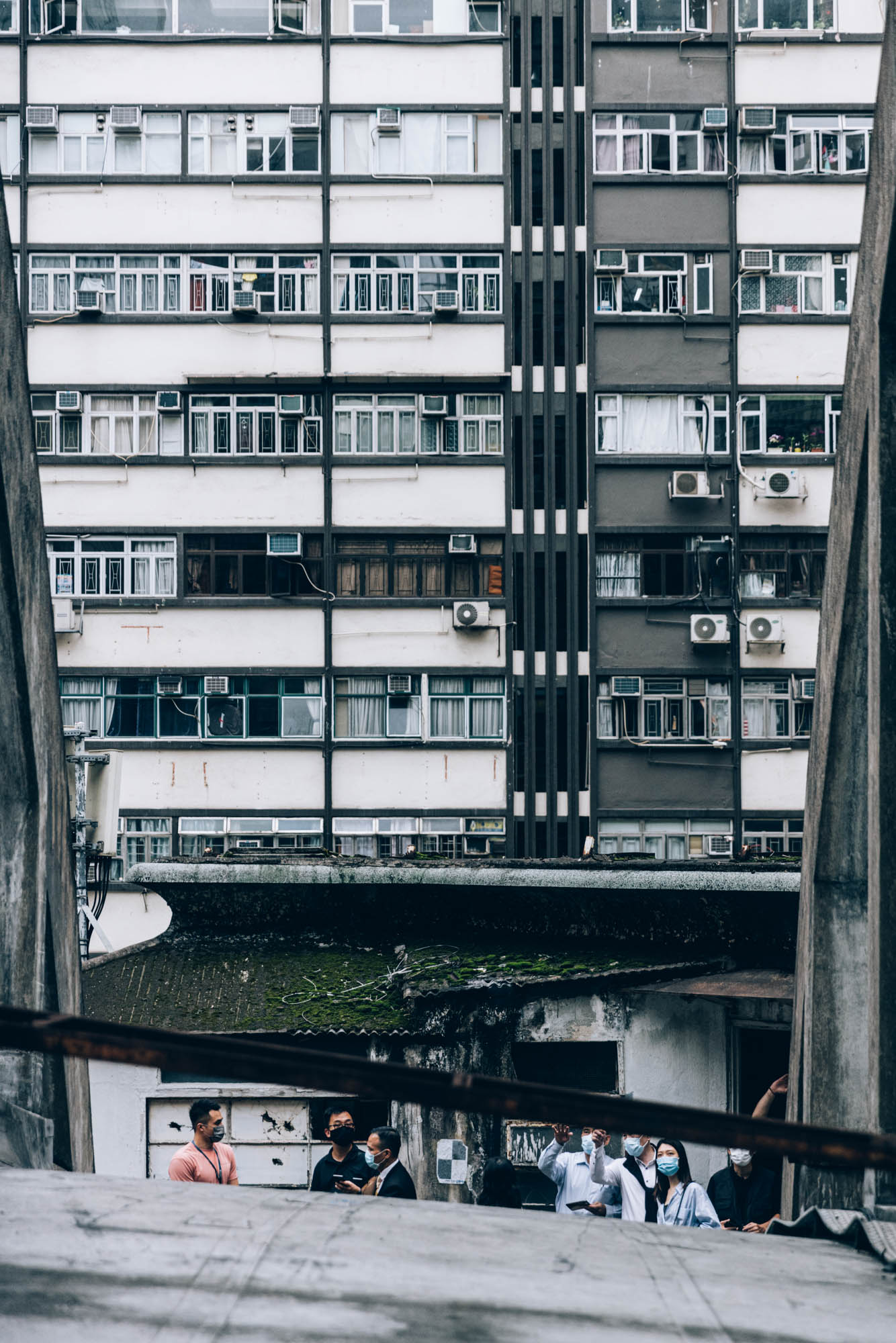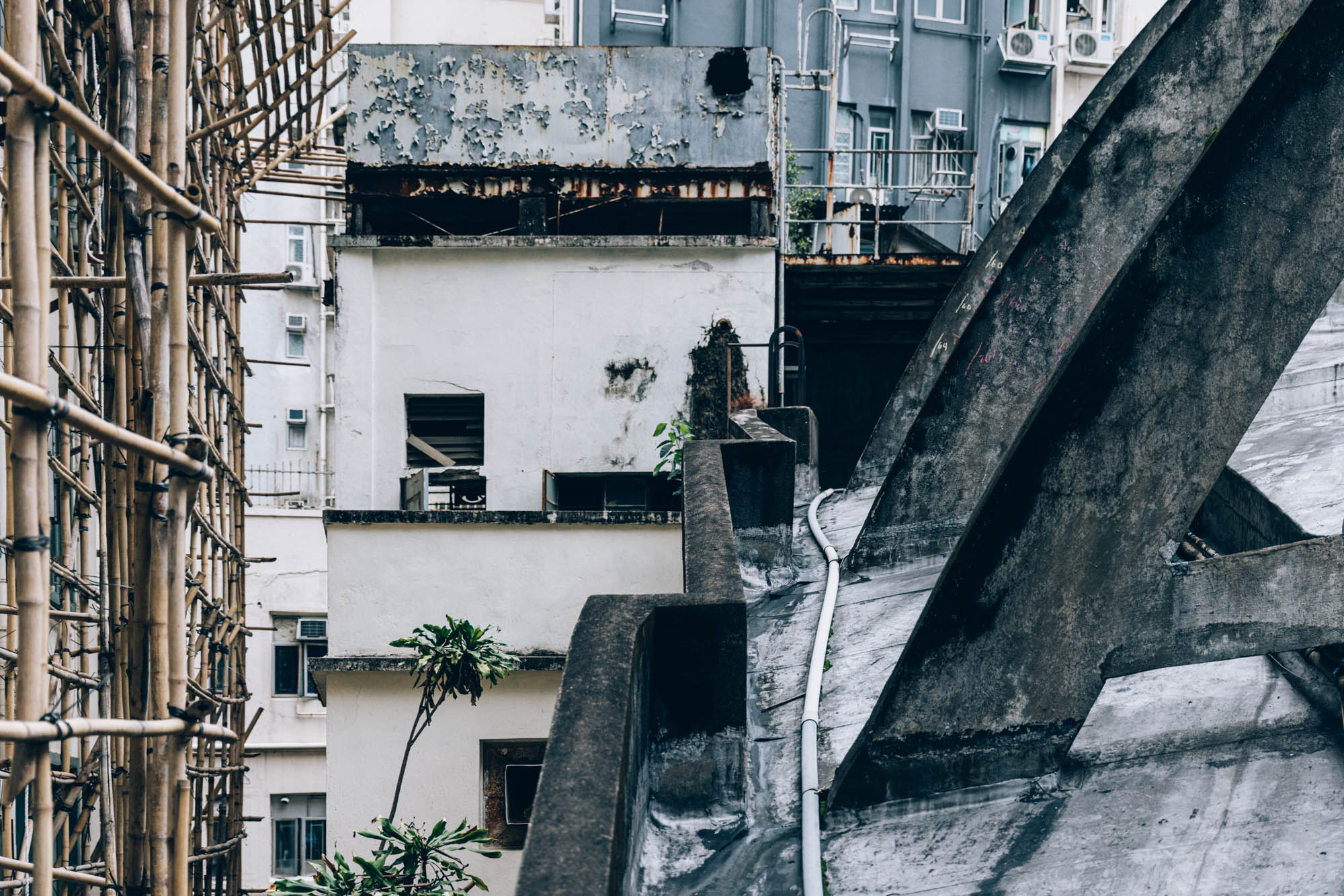 站在天台上抬頭看飛拱,不能忽視的是,你一定會看到緊鄰皇都的大廈都圍上了棚架,不用猜想你也會知道,一個由發展商用47.76億元投得的地產項目,怎會不是個他們要全力發展的大型樓盤企劃?